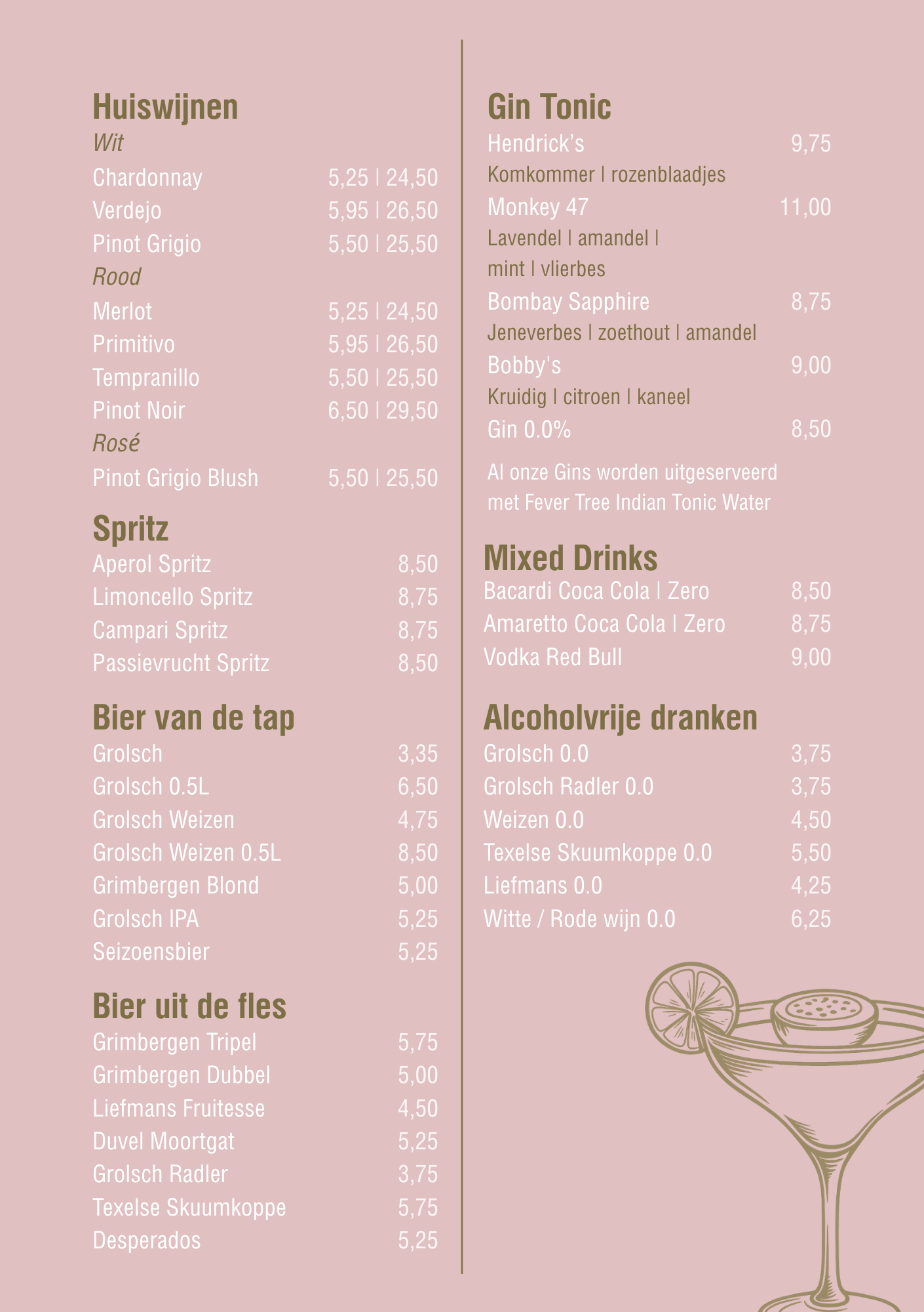 Onze gastheren en gastvrouwen staan voor je klaar om er een geweldige, gezellige avond van te maken. Een lekker pilsje, goed glas wijn, een speciaal biertje van de tap? Of ga jij voor die heerlijke cocktails? We hebben het allemaal. Enne… Geen zin in alcohol? Wij hebben ook aardig wat virgin drinks in ons assortiment! En natuurlijk hebben we de lekkerste snacks en borrelplanken. Dus.. Be there or be square 🙂