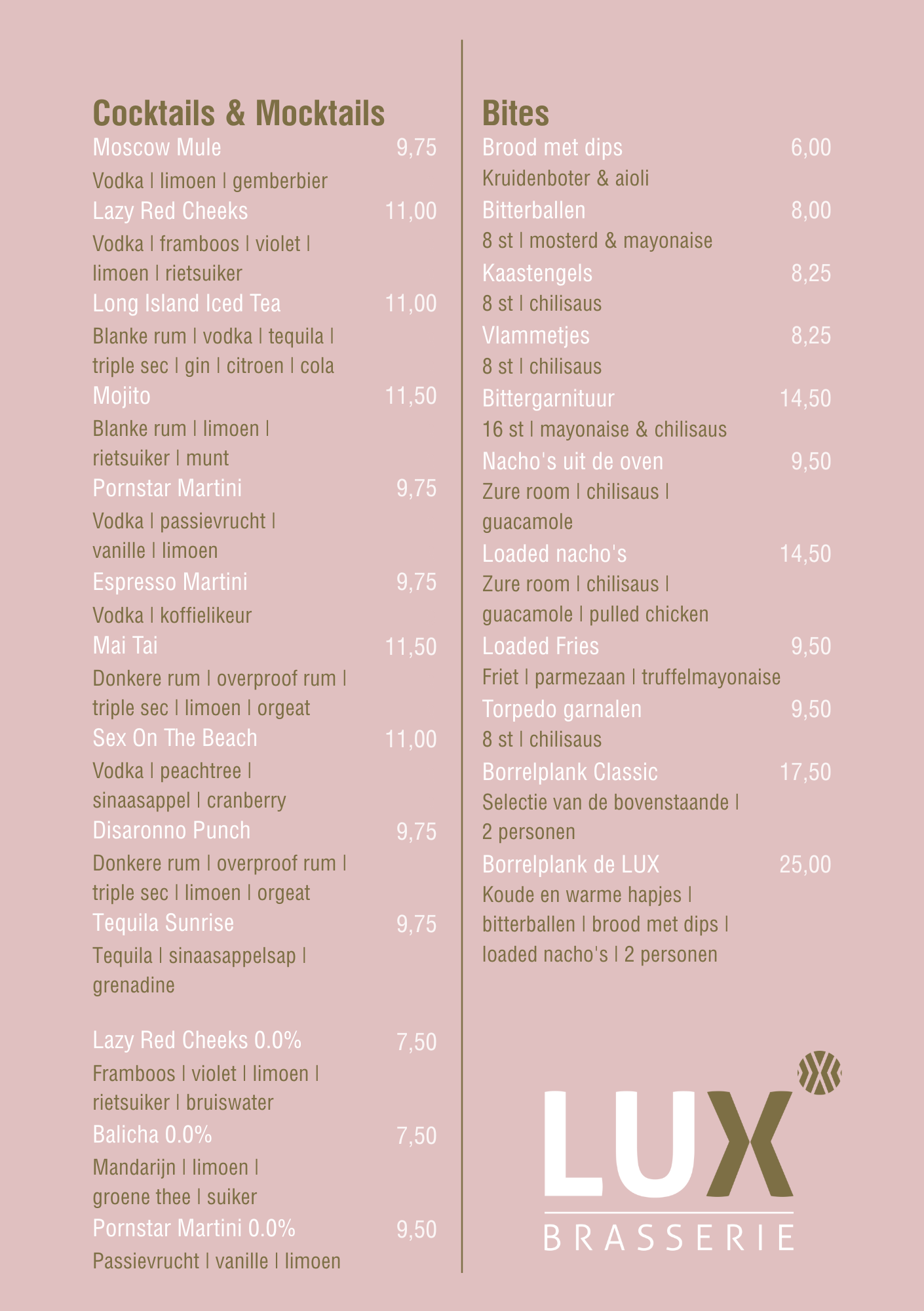In het weekend gaan we graag een uurtje langer door bij LUX in de café bar!